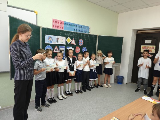 02.09.2024 Первоксассники были посвящены в пешеходы. Наш ЮИД и начальник ОГИБДД МВД России по Майкопскому району Г.И. Бардюг совместно с инспектором по пропаганде БДД ОГИБДД ОМВД России по Майкопскому району Ю.Н. Токаревой провели беседу по профилактике детского дорожно - транспортного травматизма с учениками начальных классов. Они рассказали ребятам о том, что на дороге нельзя бегать и играть .Ученики узнали, что нужно всегда смотреть в обе стороны перед тем, как переходить дорогу, чтобы убедиться, что дорога свободна. Ученикам было показано, как правильно переходить дорогу по пешеходному переходу , а также узнали о значении основных дорожных знаков. Знания этих правил помогут детям избежать несчастных случаев на дороге.
